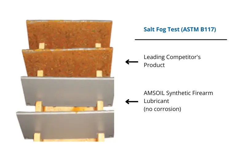AMSOIL Synthetic Firearm Lubricant and Protectant guards against damaging corrosion better than a leading competitor’s product. It lubricates to prevent blockage, jams and wear, to extend gun life and help keep firearms working properly for generations.